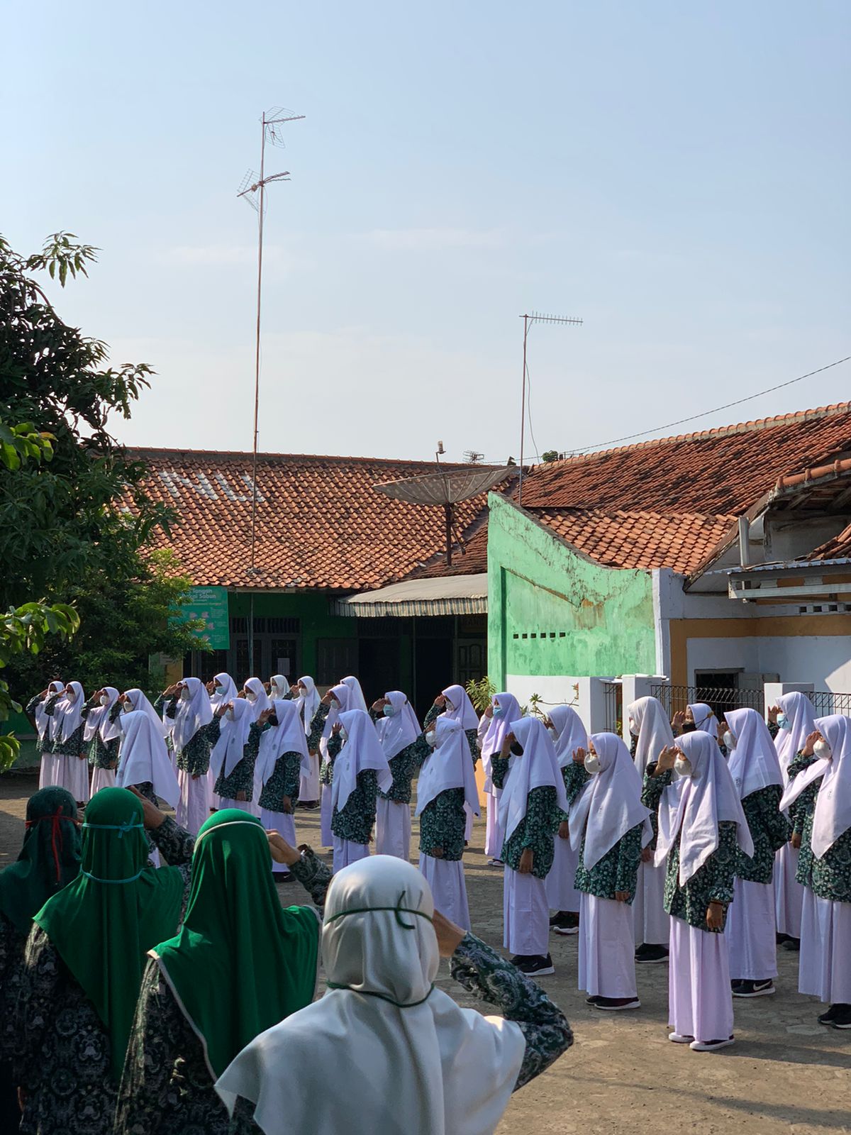Kegiatan upacara yang bertemakan “Berkhidmah Melalui Pendidikan Ma’arif yang Inovatif dan Responsif di Era Digital ” dipimpin oleh Ibu Maziyyah, S. Ag dan perwakilan dari siswa/siswi kels VIII sebagai petugas upacara serta diikuti oleh bapak/ibu guru dan para mahasiswa PPL dari IAIN Pekalongan sebagai peserta upacara.